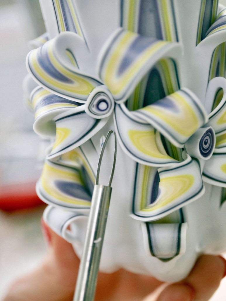 Nach einer kurzen theoretischen Einführung tauchen Sie direkt in die Praxis ein: Gemeinsam gestalten wir die Basis, färben die Kerze durch mehrmaliges Eintauchen in warmes, farbiges Paraffin und erleben dabei beeindruckende Farbverläufe und kreative Effekte. Sobald die Form perfekt vorbereitet ist, beginnt der spannendste Teil – das Schnitzen. Mit präzisen Schnitten erschaffen Sie faszinierende Muster, filigrane Ornamente und elegante Formen, die Ihre Kerze zu einem echten Einzelstück machen.